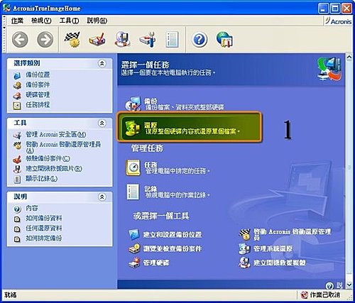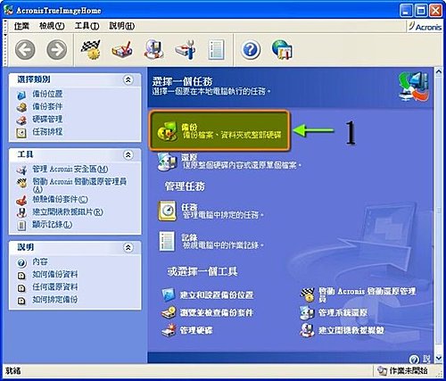 1.開啟 Acronis True Image 10.0主程式